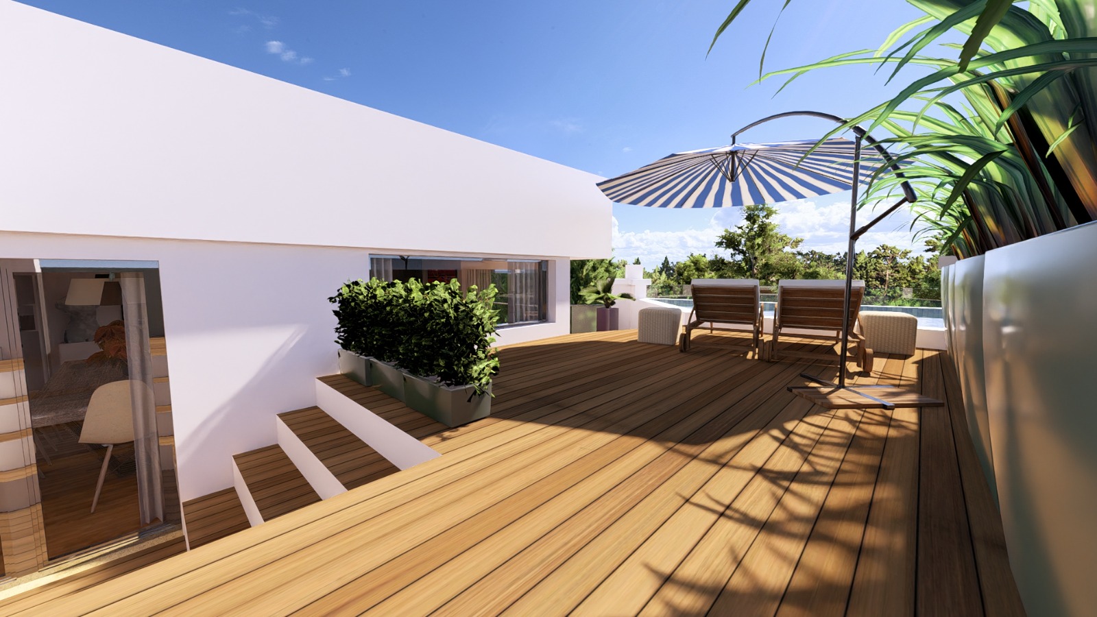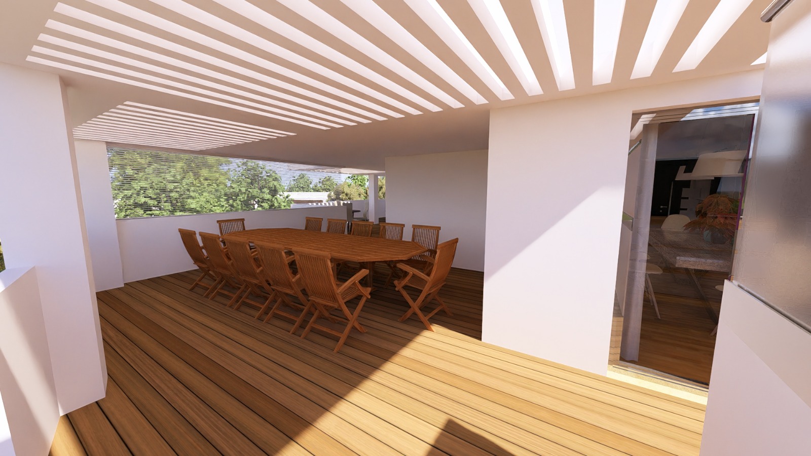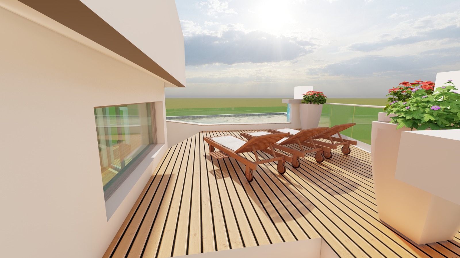 Sì. L’attico dispone di piscina privata sul terrazzo con pergola bioclimatica e area solarium, progettata per garantire privacy e comfort.